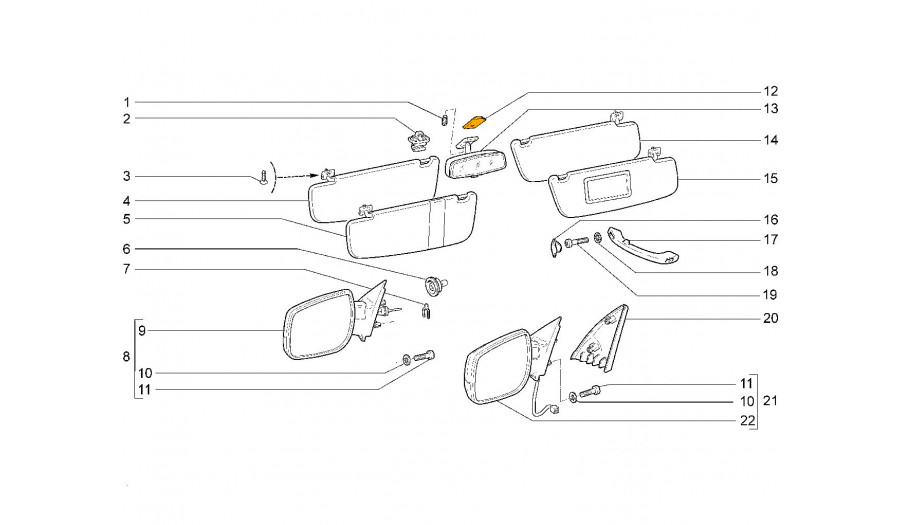 Пластина крепления зеркала внутрисалонного (ремкомплект пятака зеркала) для автомобилей Лада Калина, Калина-2, Гранта (кроме FL), Датсун. На схеме изображена под номером 12.