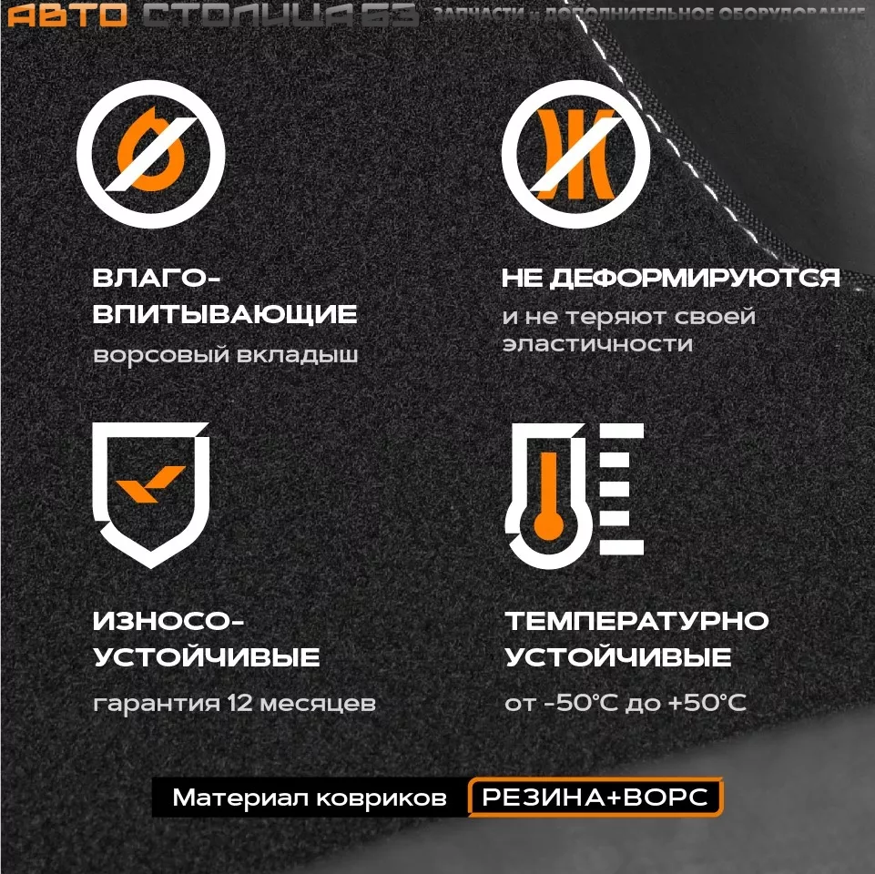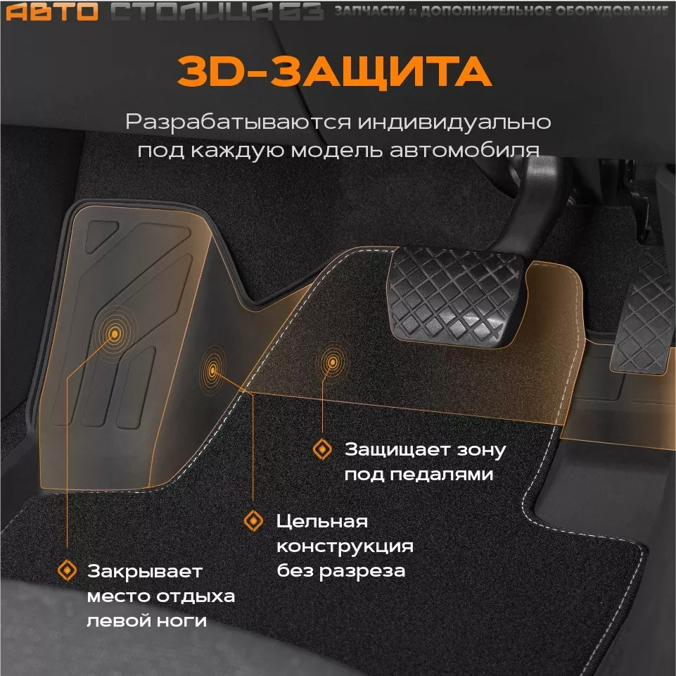 В комплект входят 4 резиновых ковра, 4 ворсовых ковра, подпятник ворсовый.