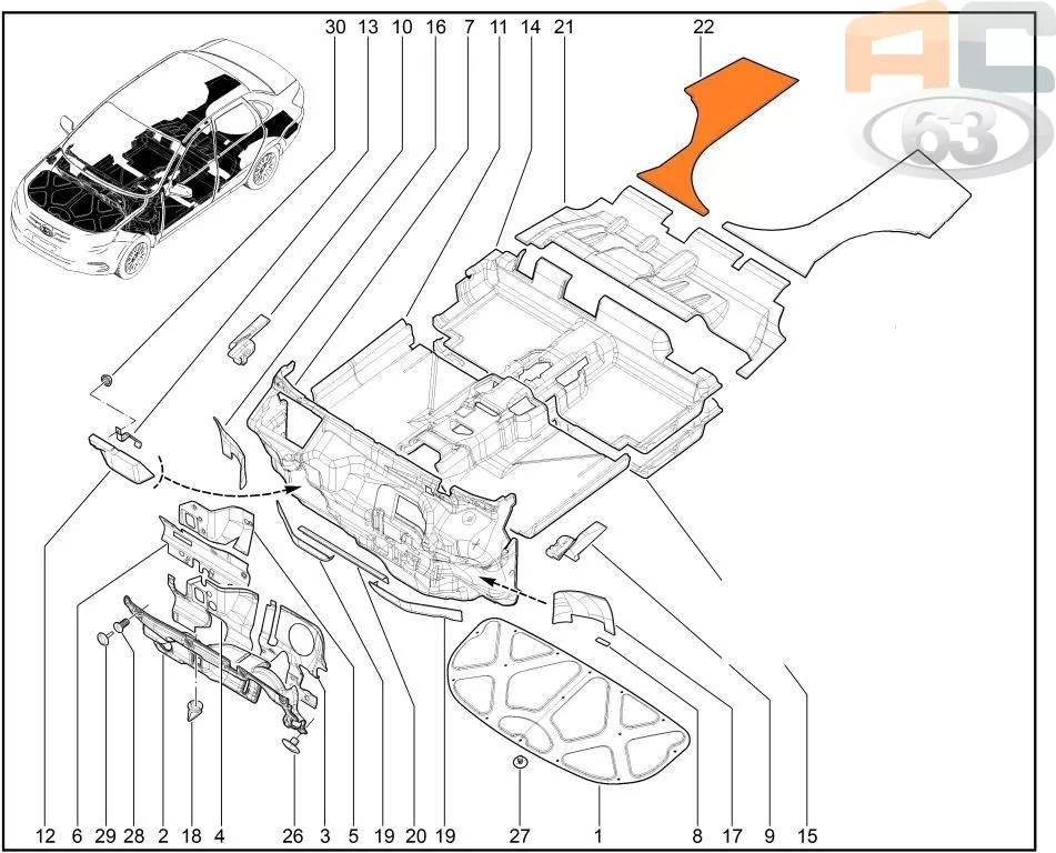 Шумоизоляционная обивка пола предназначена для уменьшения уровня шума, поступающий с улицы. Данная обивка кладется в багажнике на пол, тем самым уменьшая уровень шума, поступающий из багажного отделения.