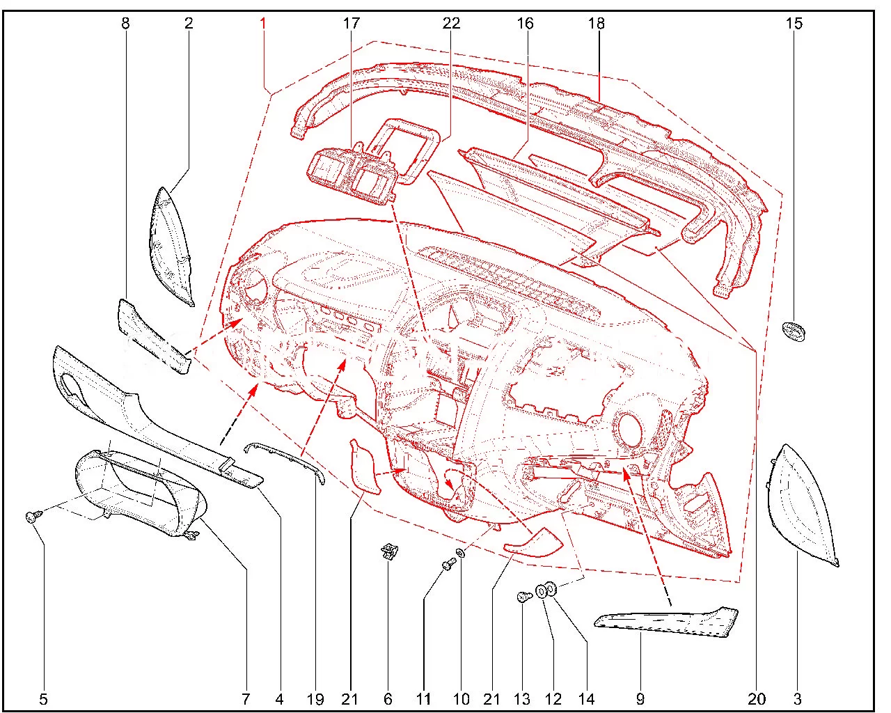 Штатная панель приборов с воздухопроводом в сборе (торпедо) для Лада Гранта, Калина-2.