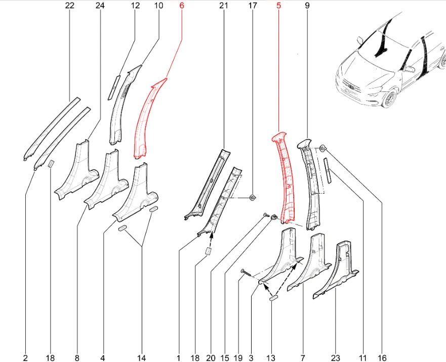 Штатная оригинальная обивка центральной стойки верхняя для Lada Granta, Kalina-2.