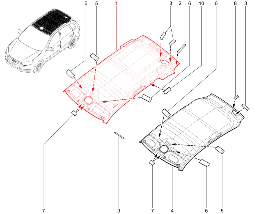 Штатная оригинальная обивка крыши (универсал, без шумоизоляции) для Lada Granta, Kalina-2.