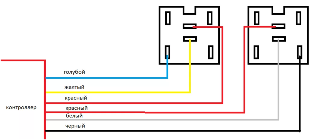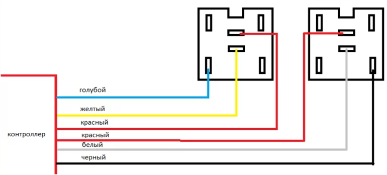 Контроллер подключается в разрыв между штанной кнопкой и колодкой кнопки.