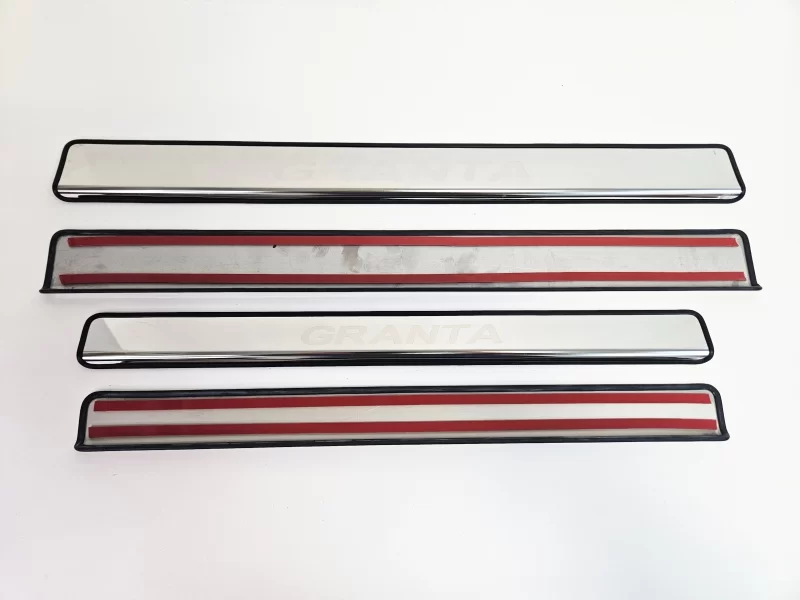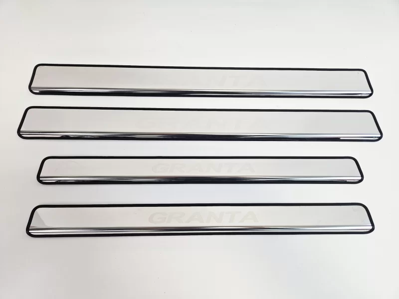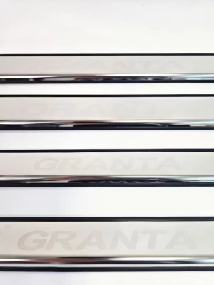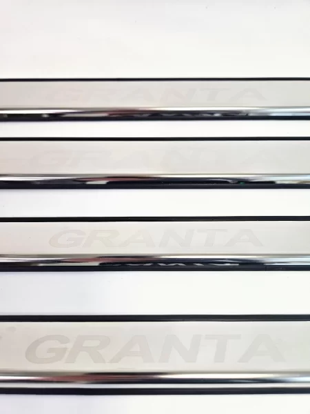 Комплект хромированых накладок из нержавющей стали для автомобилей LADA Granta с резиновой окантовкой.
