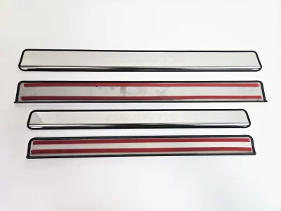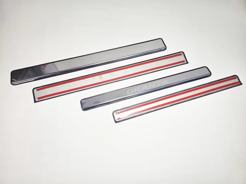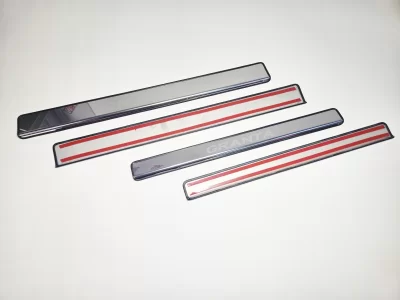 Данные молдинги предназначены для защиты порогов от царапин и прочих механических повреждений. Также служат декоративным элементом тюнинга благодаря хромированному покрытию. Молдинги имеют надпись — название модели автомобиля, для которого они применяются. Устанавливаются при помощи двухстороннего скотча, который поставляется в комплекте.