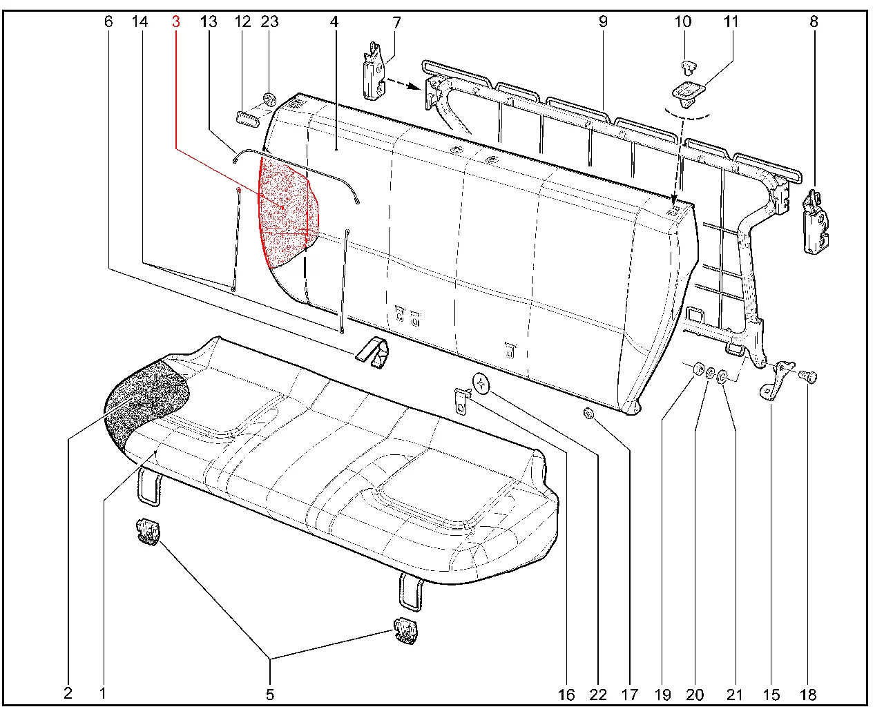 Штатная оригинальная набивка спинки заднего сиденья (нераздельного) для Lada Granta FL.