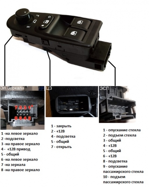 1. Блок управления стеклоподъемниками, блокировкой дверей, зеркалами ВАЗ 1118 Лада Калина.