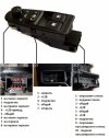Блок переключателей предназначен для управления моторедукторами электрических стеклоподъемников передних дверей, блокировки дверей и регулировки наружных зеркал заднего вида.