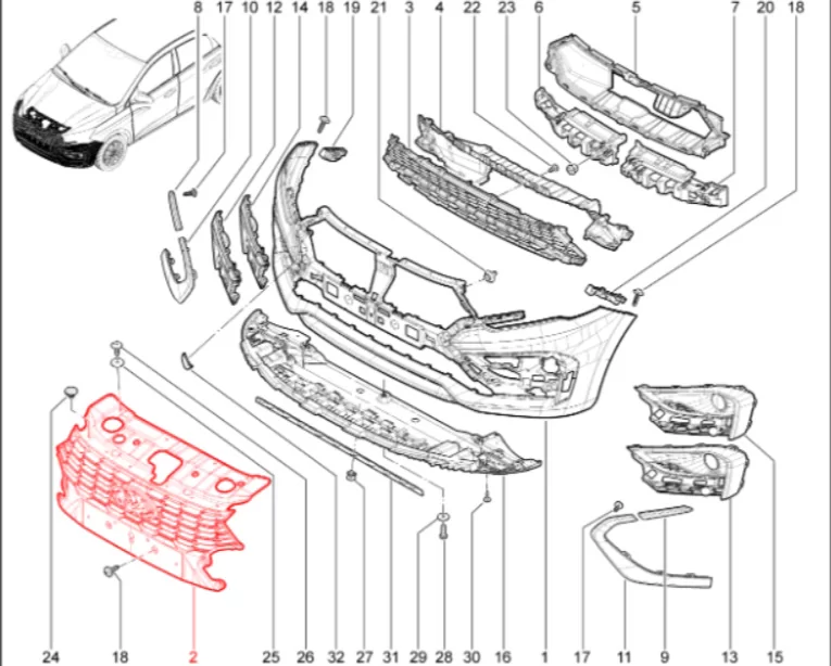 Штатная оригинальная решетка переднего бампера для Lada Iskra.