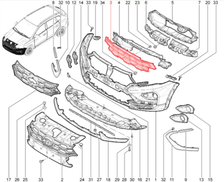 Штатная оригинальная решетка переднего бампера нижняя CROSS для Lada Iskra.