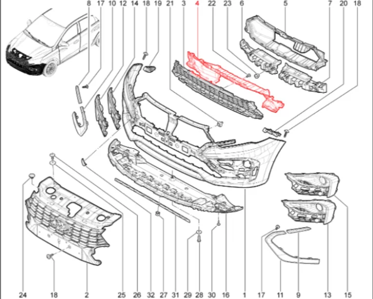 Штатный оригинальный щиток направляющий переднего бампера нижний для Lada Iskra.