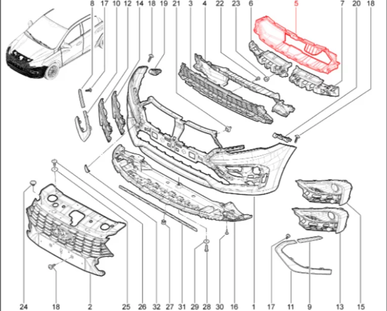 Штатный оригинальный щиток направляющий переднего бампера верхний для Lada Iskra