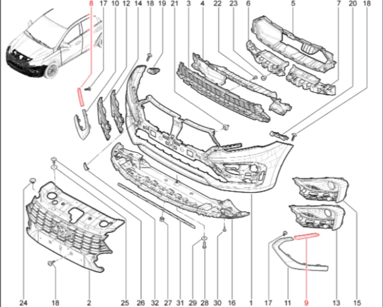 Штатный оригинальный молдинг переднего бампера верхний для Lada Iskra.