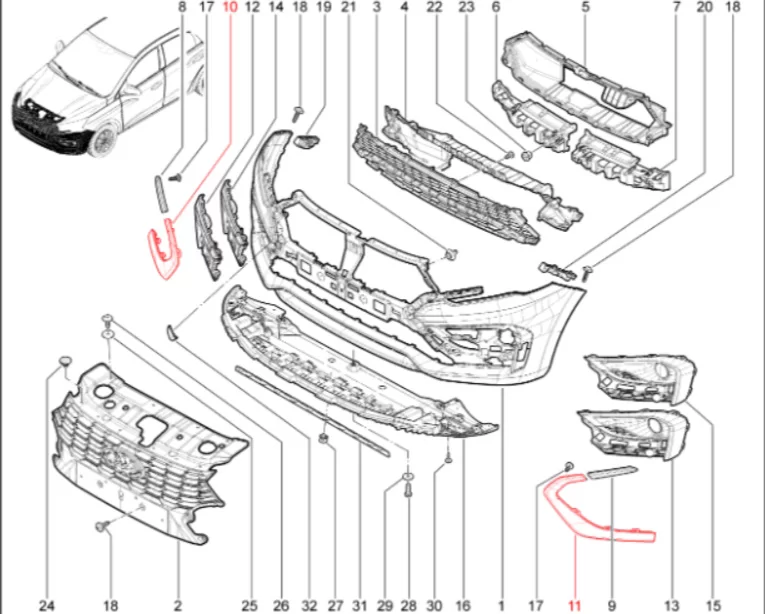 Штатный оригинальный молдинг переднего бампера нижний для Lada Iskra.