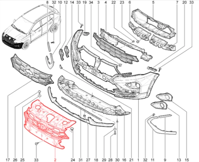 Штатная оригинальная накладка переднего бампера для Lada Iskra SW Cross.