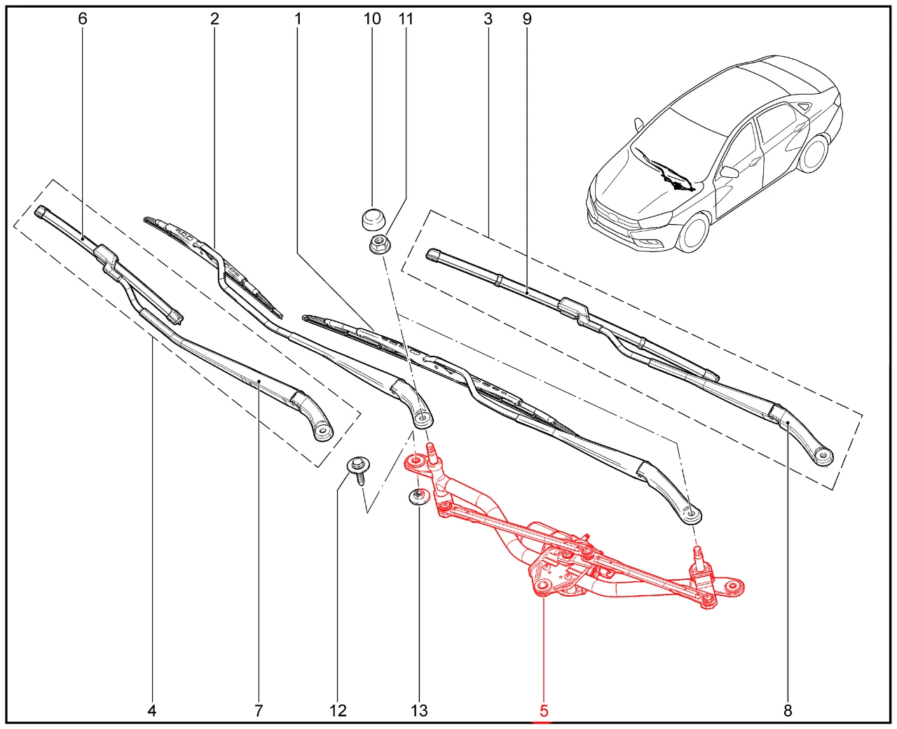 Штатный оригинальный привод стеклоочистителя ветрового стекла для Lada Iskra.
