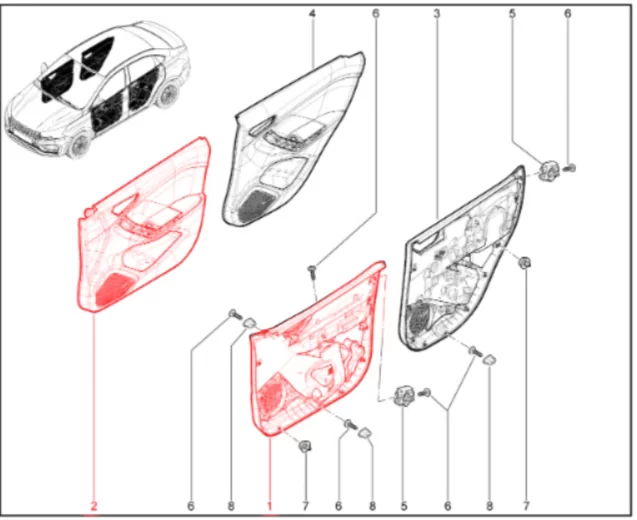 Штатная оригинальная обивка передней двери для Lada Iskra.