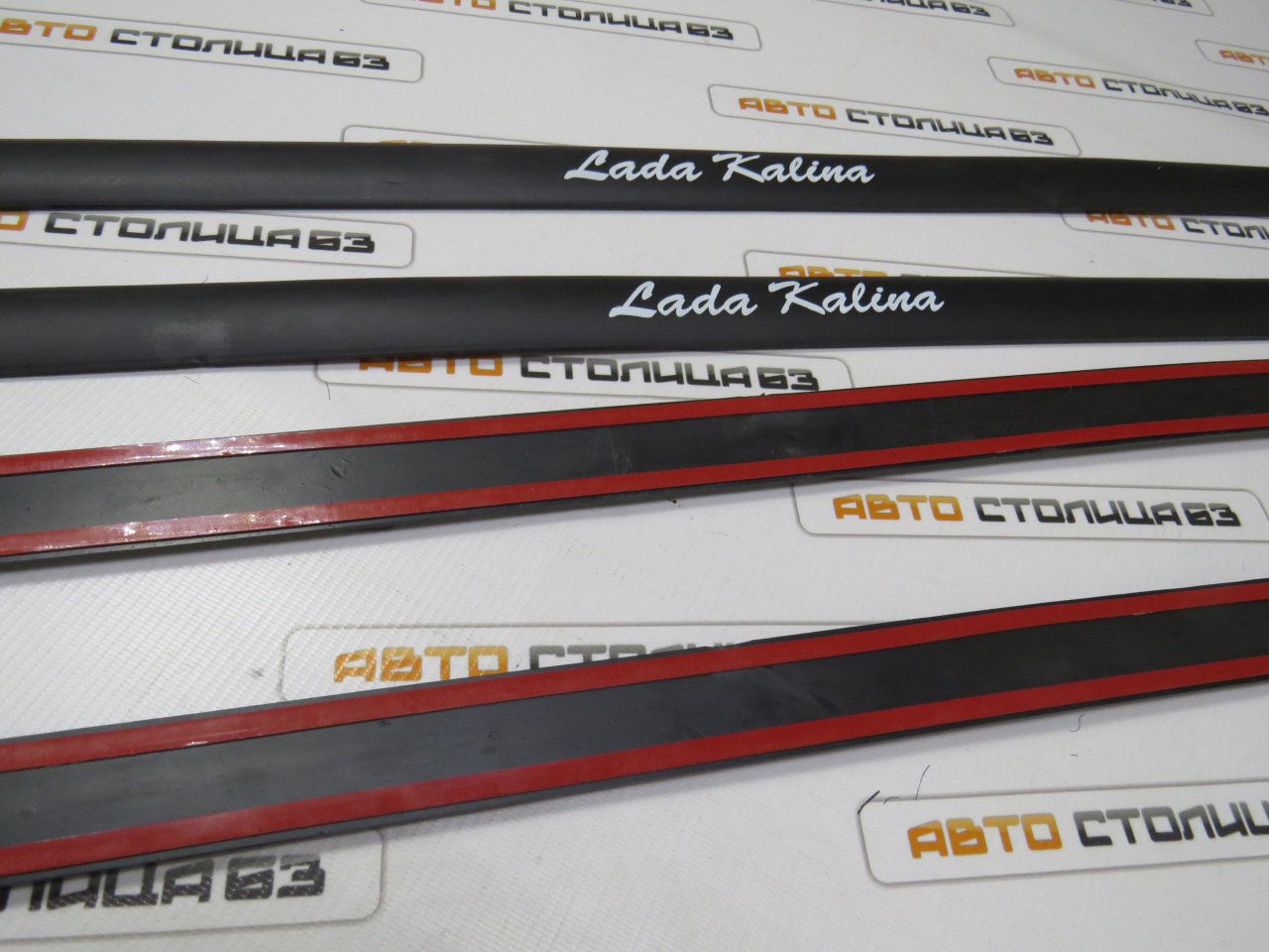 Молдинги дверей Лада Калина узкие, с надписью "Калина", литая резина.