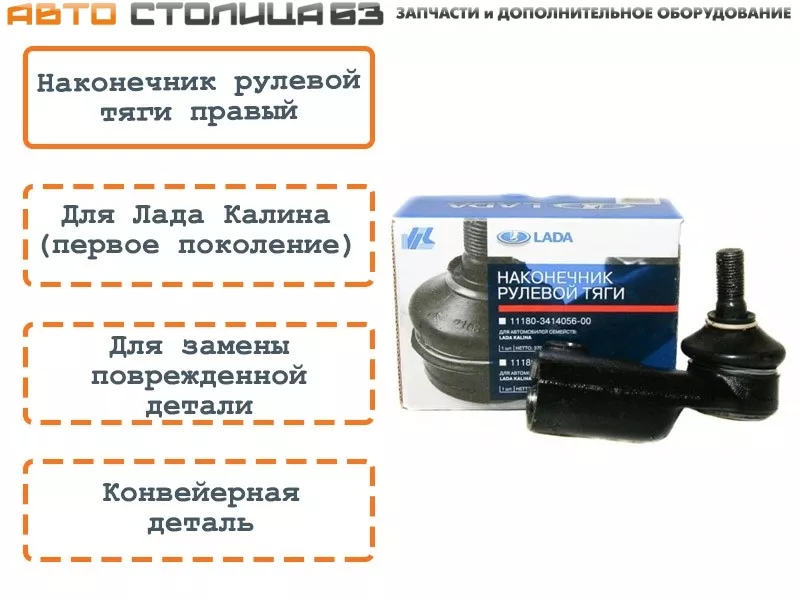 Штатный заводской наконечник рулевой тяги правый для автомобилей Лада Калина (первое поколение).