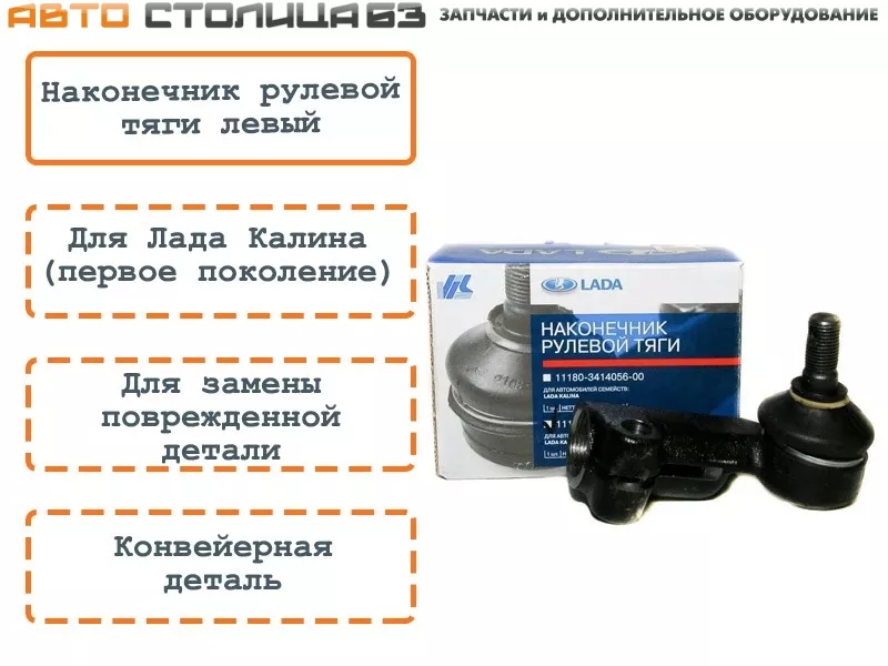 Штатный заводской наконечник рулевой тяги левый для автомобилей Лада Калина (первое поколение).