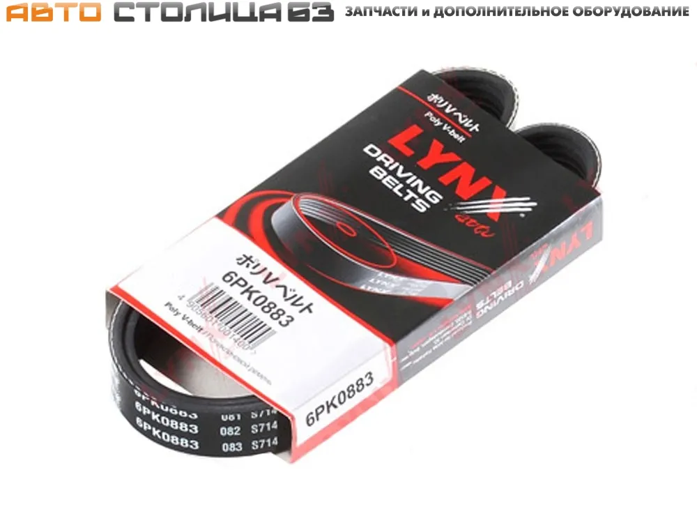 Ремень генератора и кондиционера 6PK0883 для автомобилей Лада Калина (для установки с роликом-натяжителем). Производитель - LYNXauto.