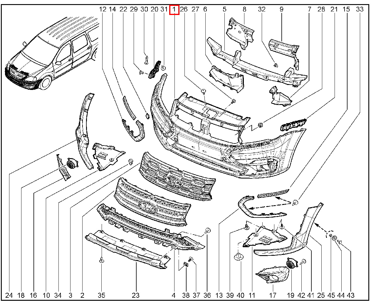 Бампер передний с отверстиями под накладки Cross для Лада Ларгус с 2021 г.в.