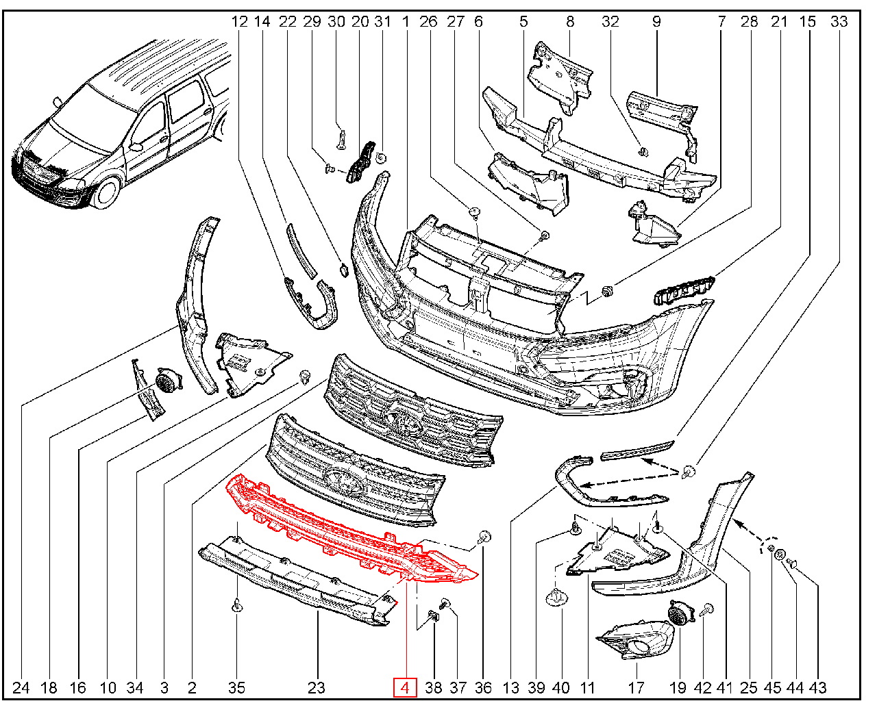 Решетка бампера нижняя для Лада Ларгус ФЛ и Кросс версии.