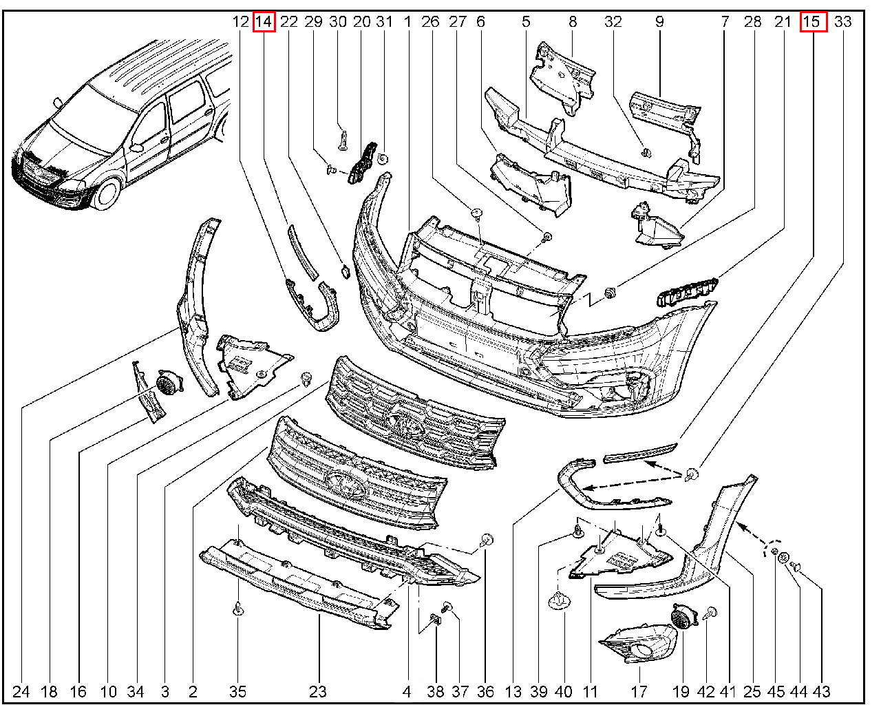 Молдинг переднего бампера верхний для Лада Ларгус ФЛ.