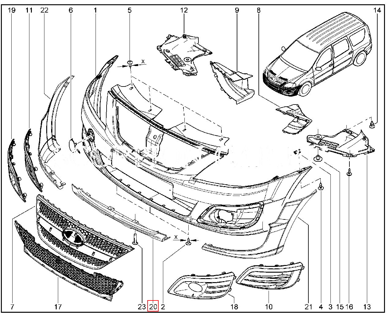 Накладка переднего бампера центральная для Лада Ларгус Кросс.