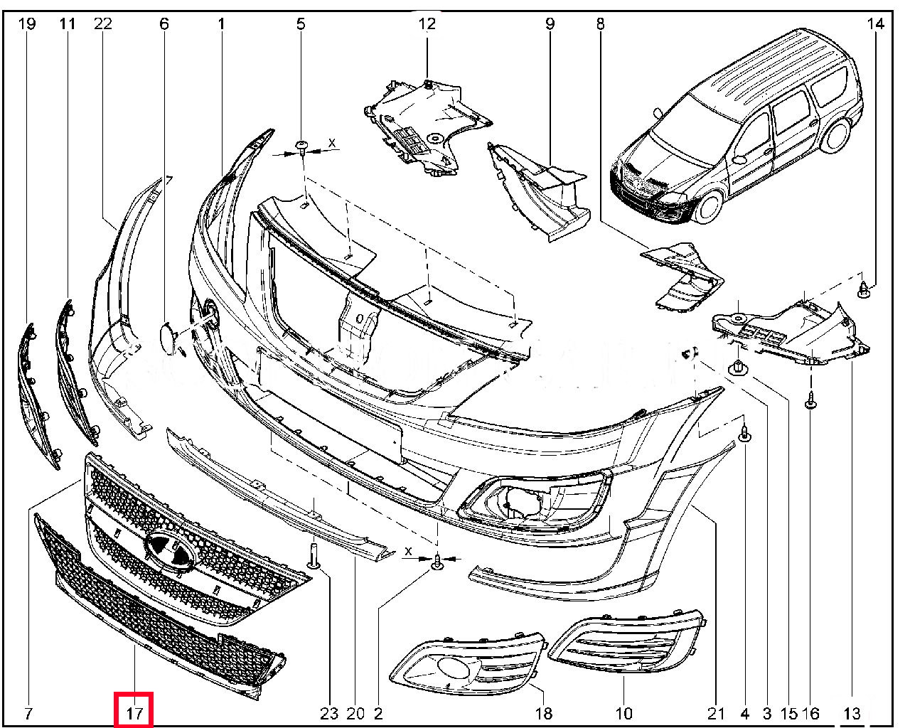 Решетка переднего бампера нижняя для Лада Ларгус.