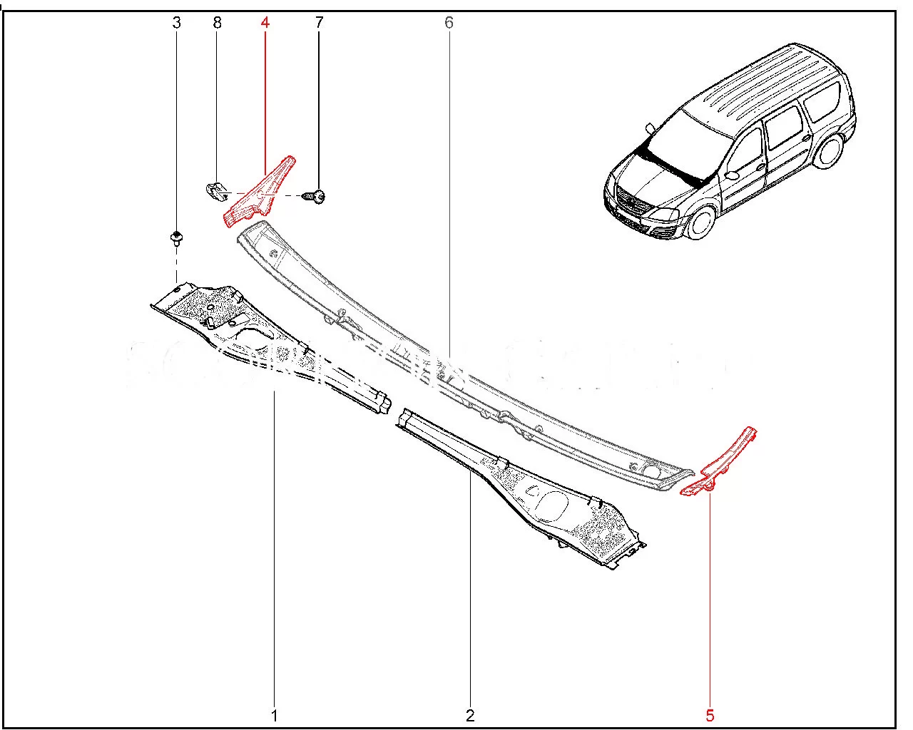 Накладка рамы ветрового окна (жабо) для Лада Ларгус ФЛ (с 2021 года).
