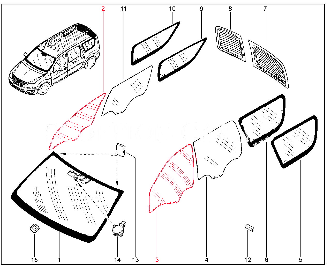 Стекло опускное передней двери тонированное (Normal green) для Лада Ларгус.