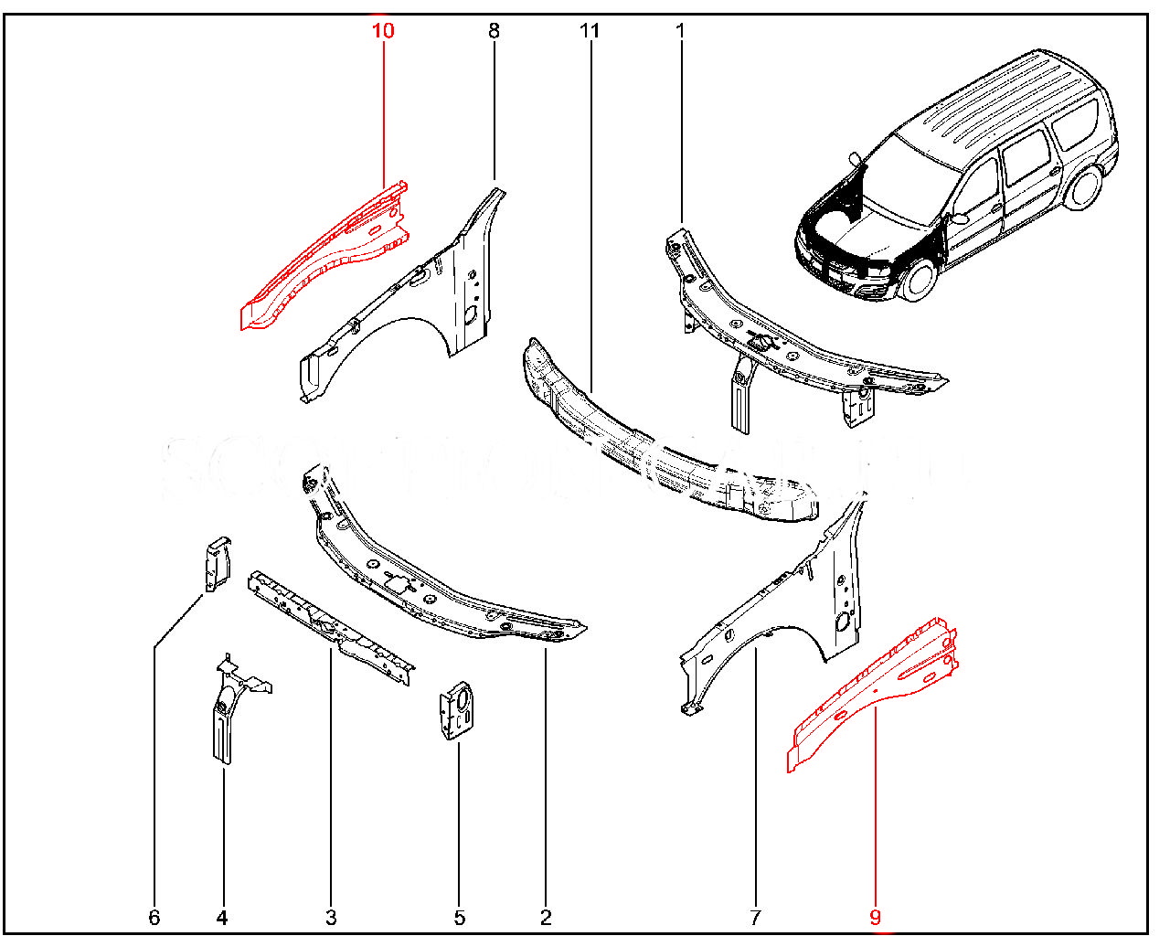 Усилитель панели брызговика передний верхний для Лада Ларгус.