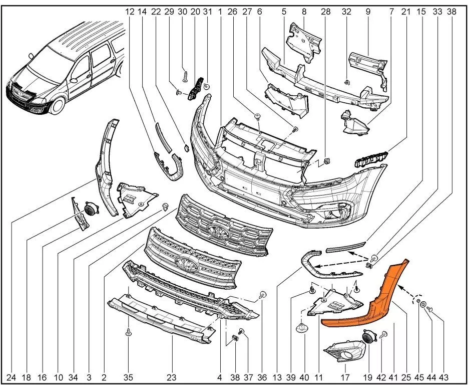 Данная накладка является частью заводского обвеса Ларгус Кросс, защищает бампер в районе арок от царапин.