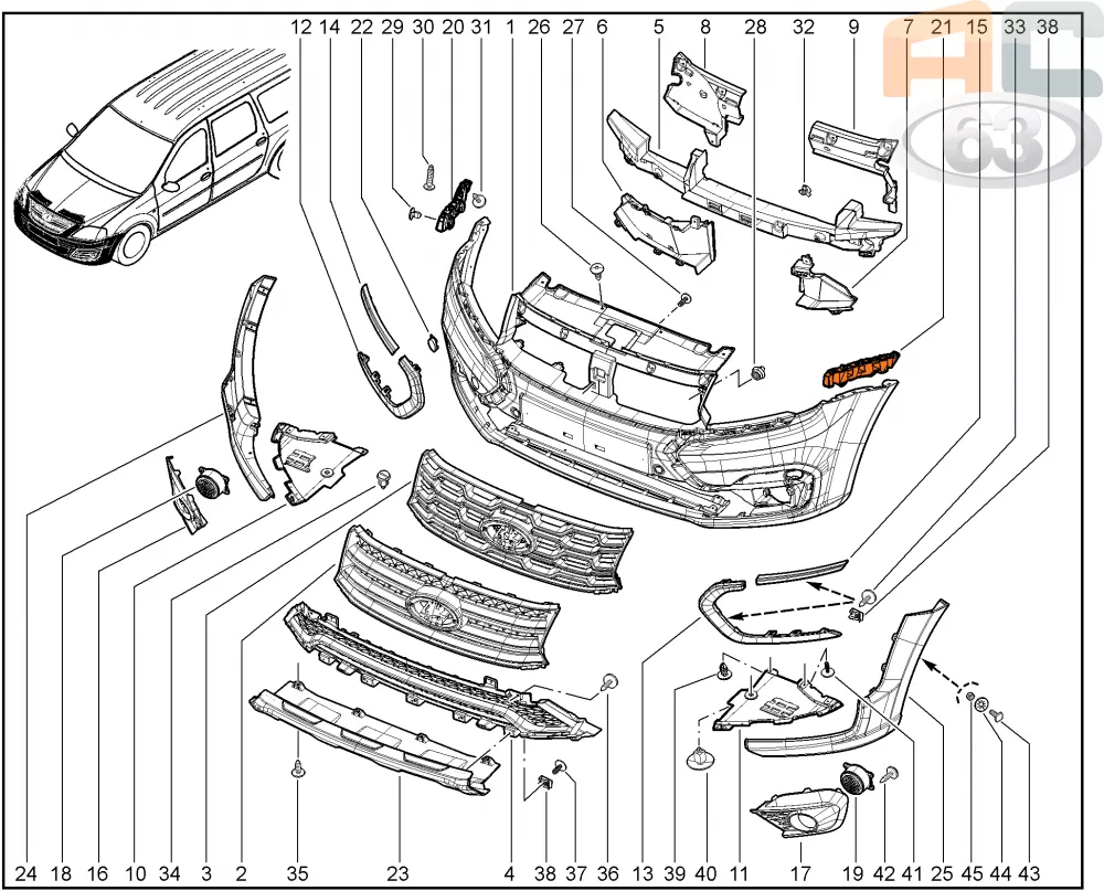 Оригинальный заводской кронштейн переднего бампера левый для автомобиля Лада Ларгус FL.