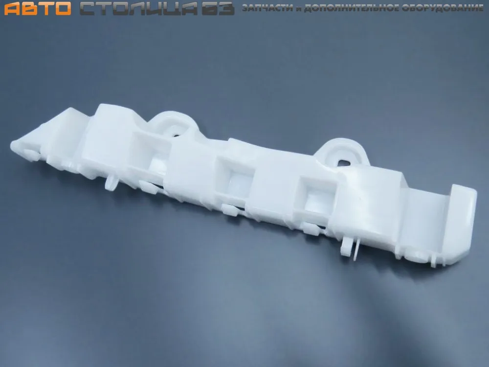 Запчасть устанавливается на кузов, благодаря этому кронштейну угол бампера встает в зацеп и плотно держит бампер. Данная деталь может вам понадобиться, если ваш кронштейн по каким-то причинам пришел в негодность, так как без него вы не сможете выставить бампер по зазорам.