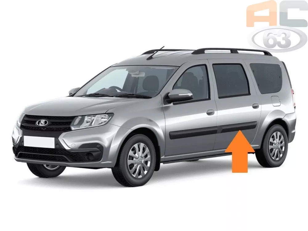 Штатный заводской молдинг на заднюю левую дверь для автомобилей Лада Ларгус FL и Ларгус FL Cross с 2021 года.