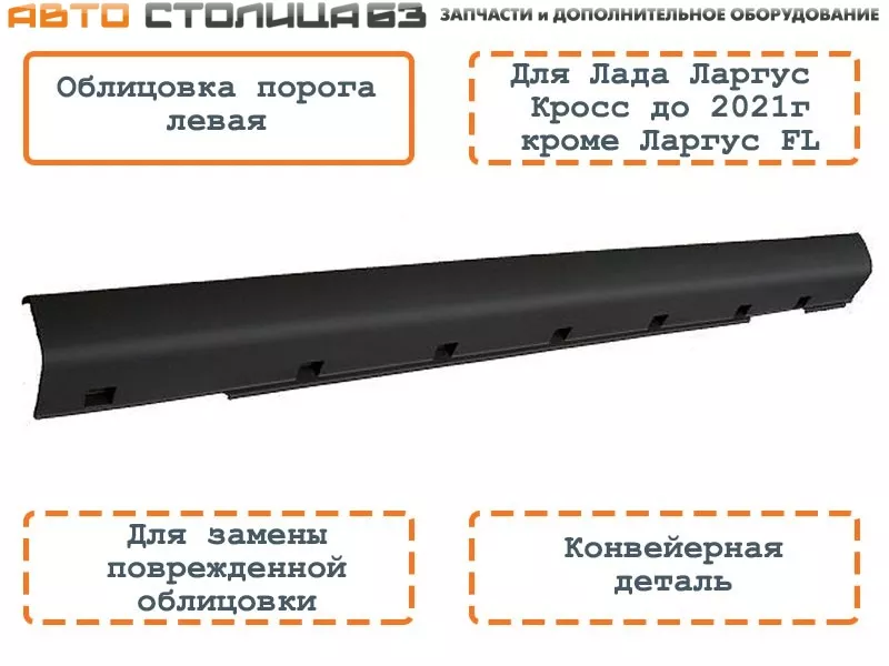 Штатная облицовка порога левая для автомобилей Лада Ларгус Кросс до 2021г.в. (кроме Ларгус FL).