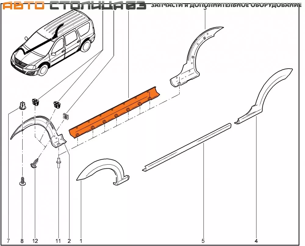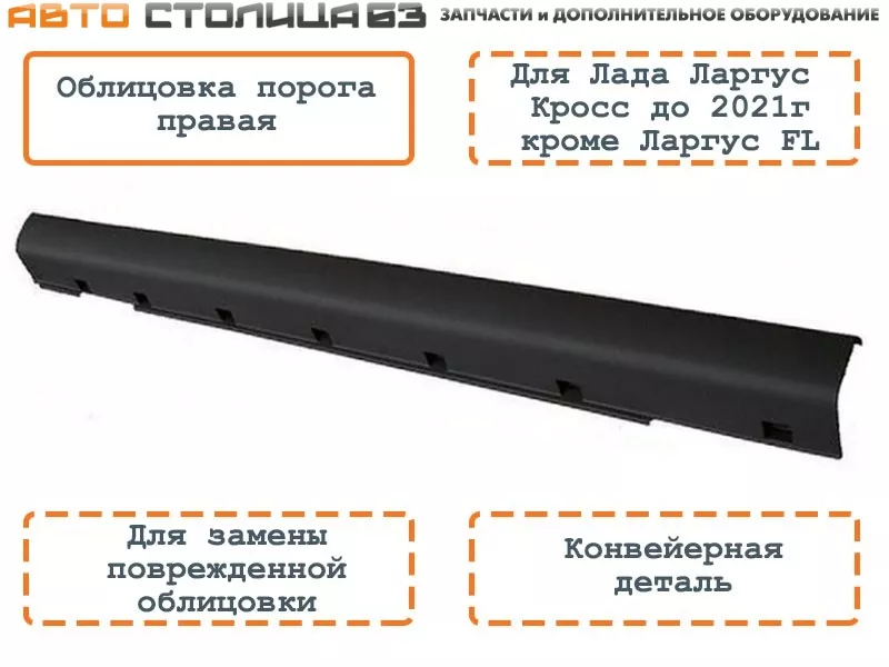 Штатная облицовка порога правая для автомобилей Лада Ларгус Кросс до 2021г.в. (кроме Ларгус FL).