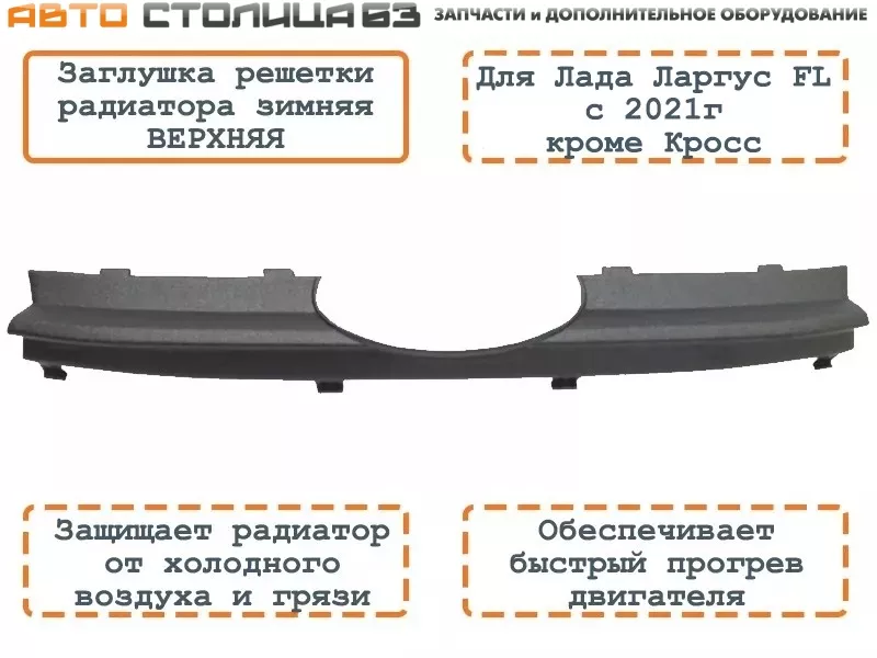 Зимняя защита радиатора для Ларгус поможет в зимнее время года быстрее прогреть автомобиль, дольше удержать тепло в подкапотном пространстве и держать рабочую температуру на трассе в сильный морозный ветер.