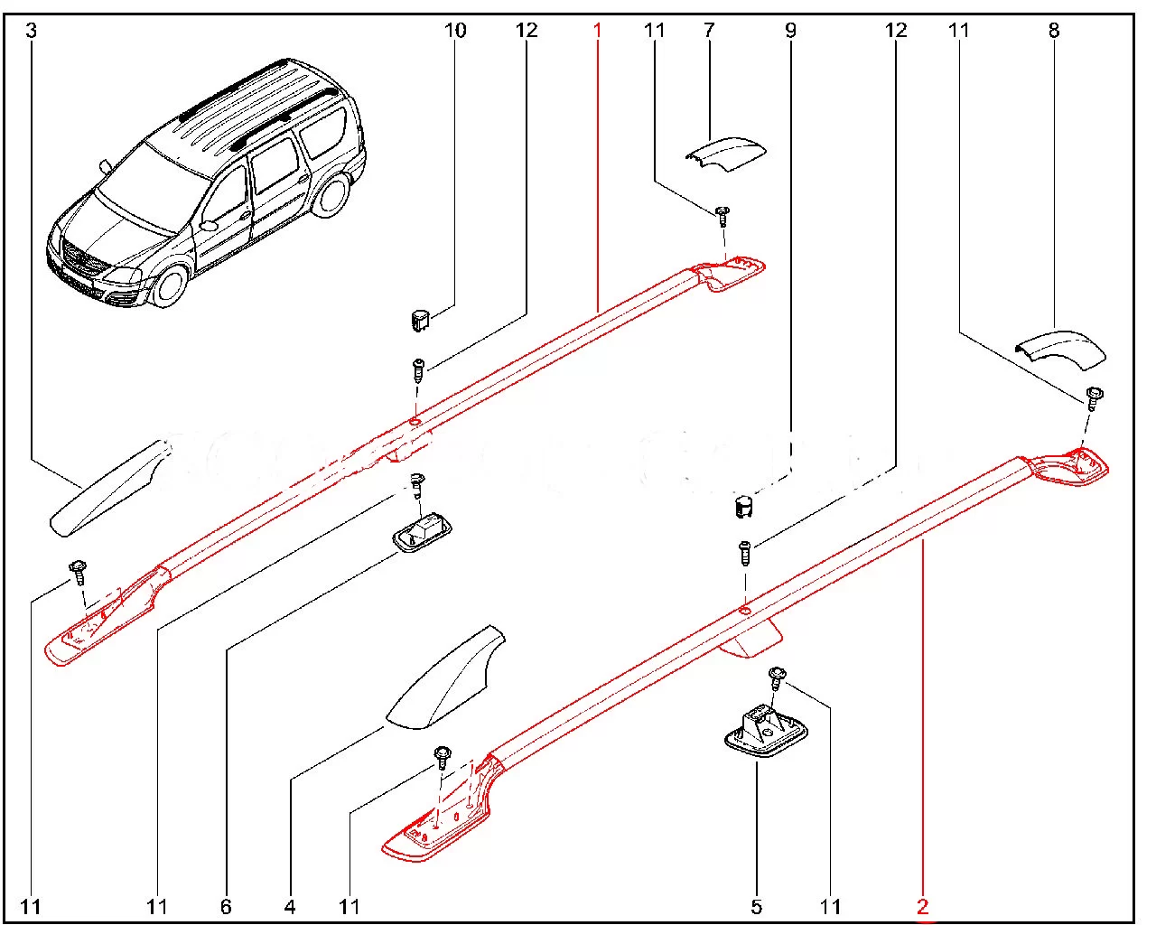 Рейлинг багажника крыши с передним, задним кронштейнами и облицовкой среднего кронштейна в сборе для Лада Ларгус ФЛ.