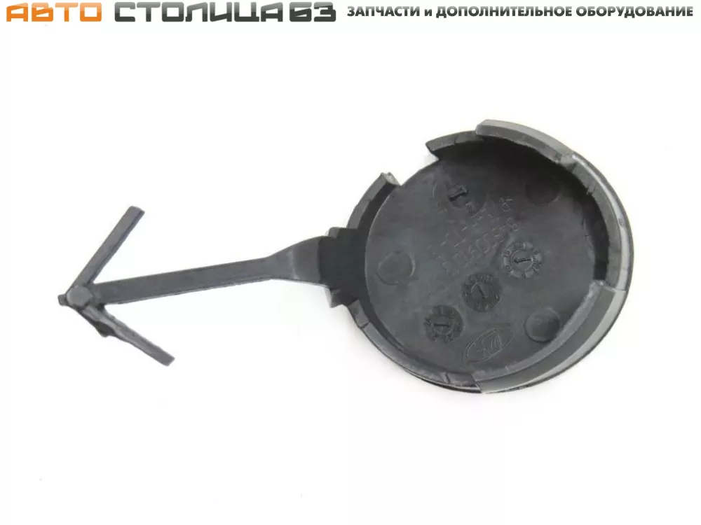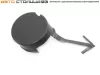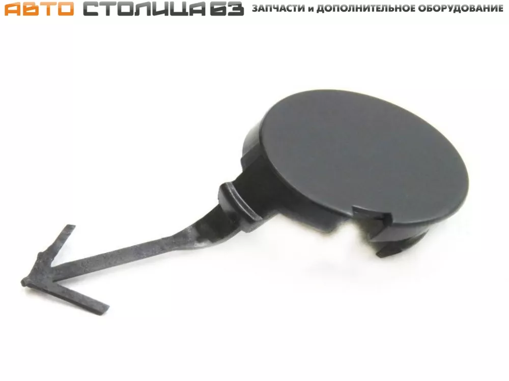 Крышка выполнена из черного пластика и готова под покраску. Данная запчасть нужна для того, чтобы закрыть отверстие под буксировочную проушину, защитить резьбу от грязи, воды и прочих веществ, летящих с дороги.