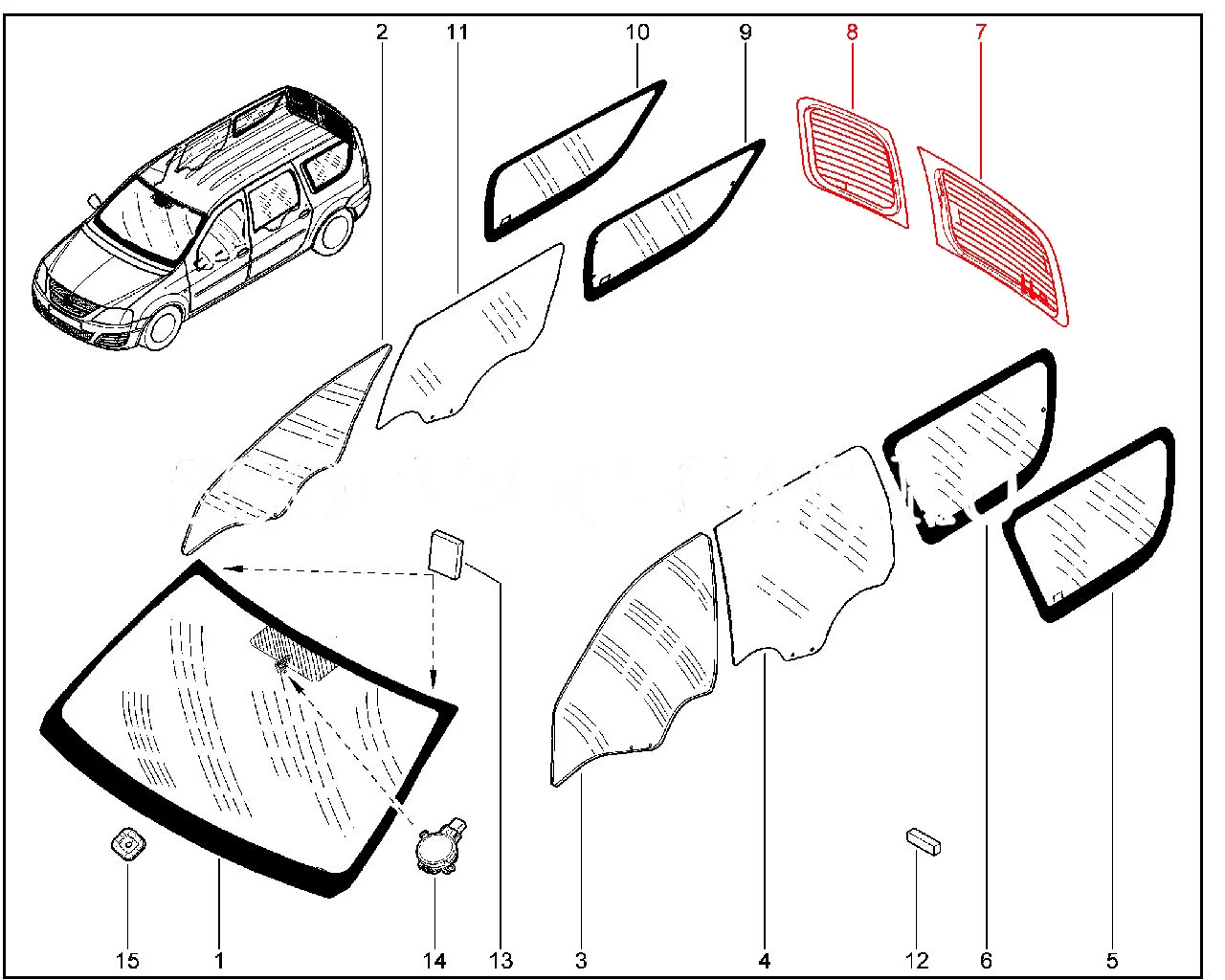 Штатное стекло двери задка тонированное (Normal green) для Лада Ларгус.
