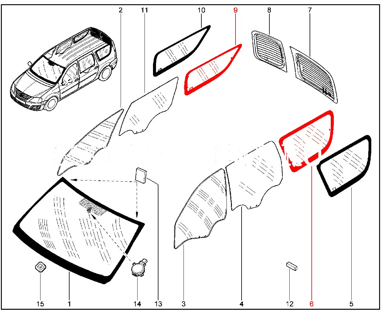 Штатное стекло окна боковое поворотное (глубокая тонировка) для Лада Ларгус.