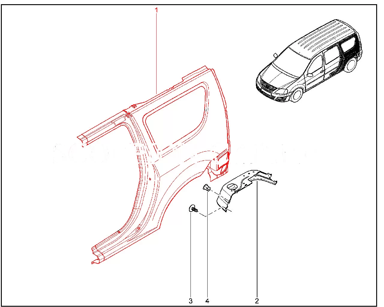 Штатная боковина кузова задняя левая 8450104266 для Лада Ларгус.