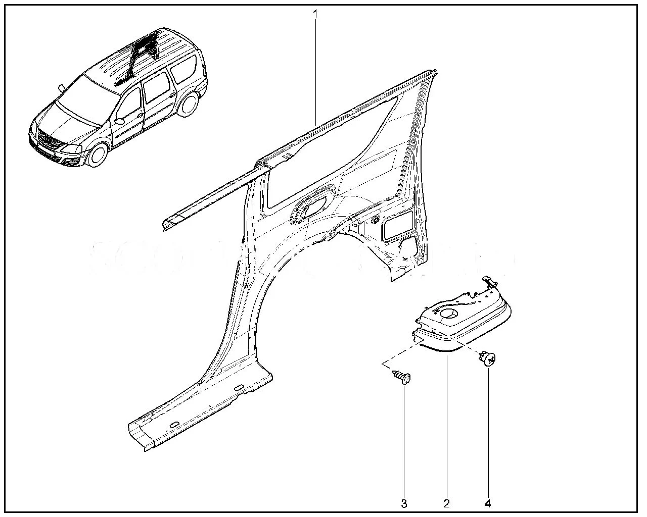 Штатная боковина кузова задняя правая для Лада Ларгус Кросс.