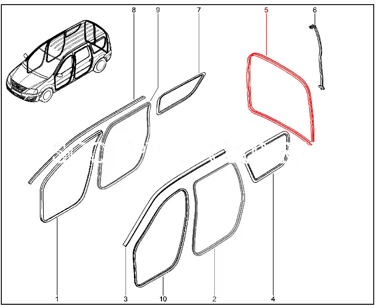 Штатный уплотнитель проема дверей задка для Лада Ларгус.