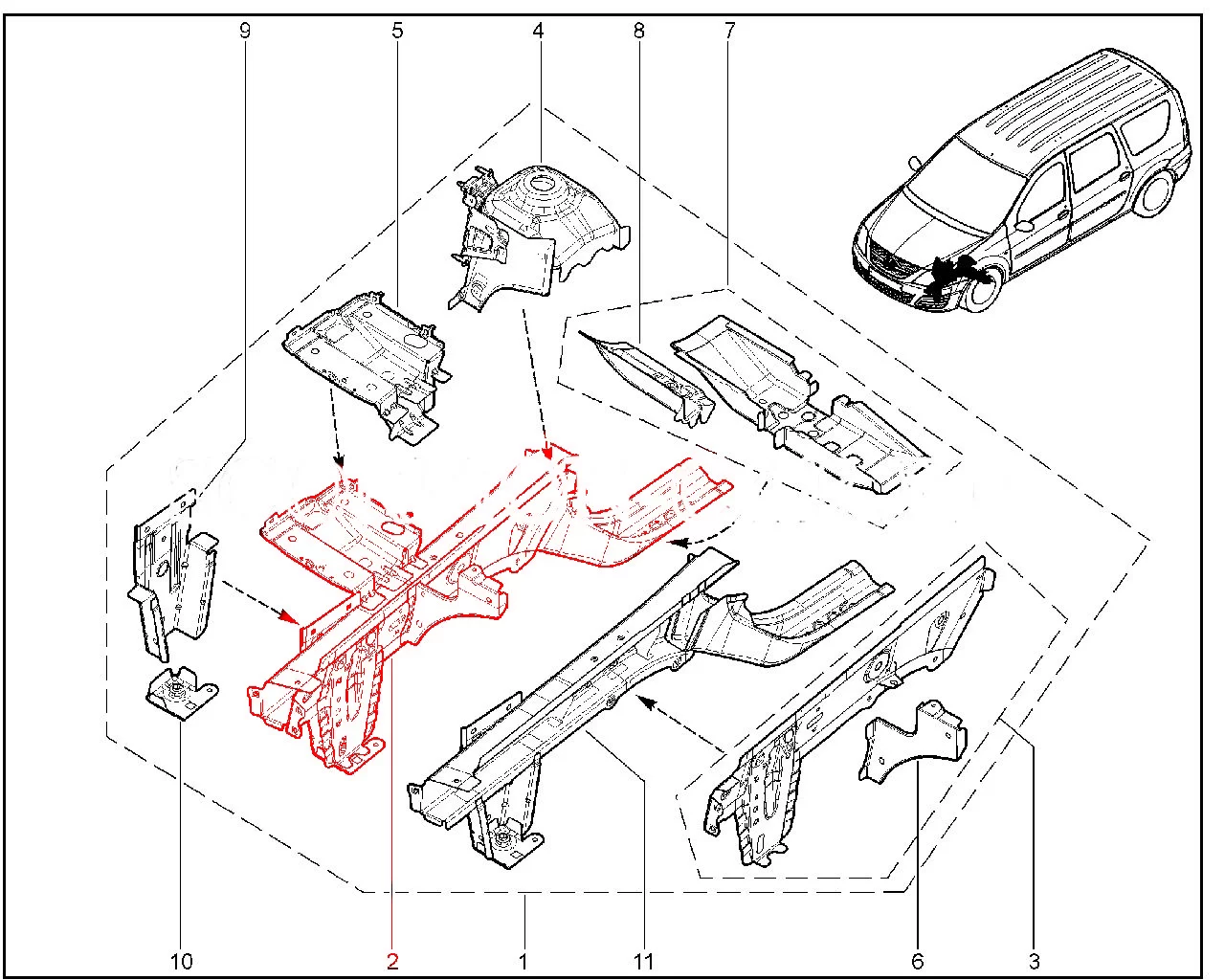 Штатный лонжерон передний левый с панелью (ДВС ВАЗ) для Лада Ларгус ФЛ.