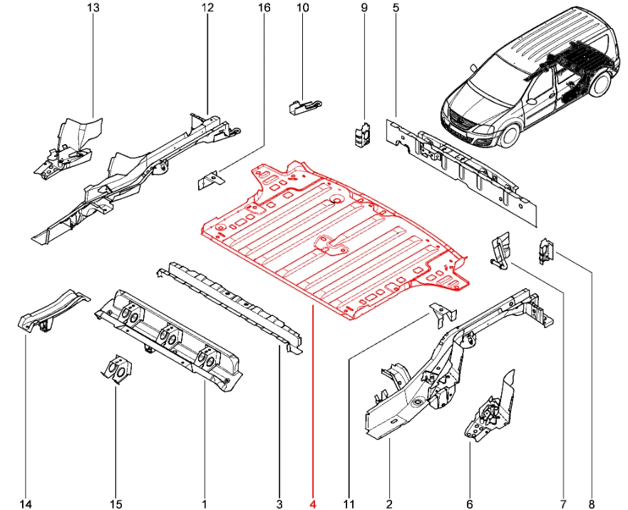 Штатная оригинальная Задняя часть заднего пола для Lada Largus