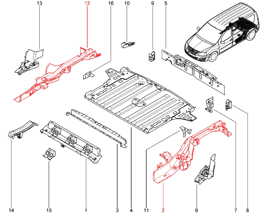 Штатный оригинальный лонжерон пола средний в сборе для Lada Largus.